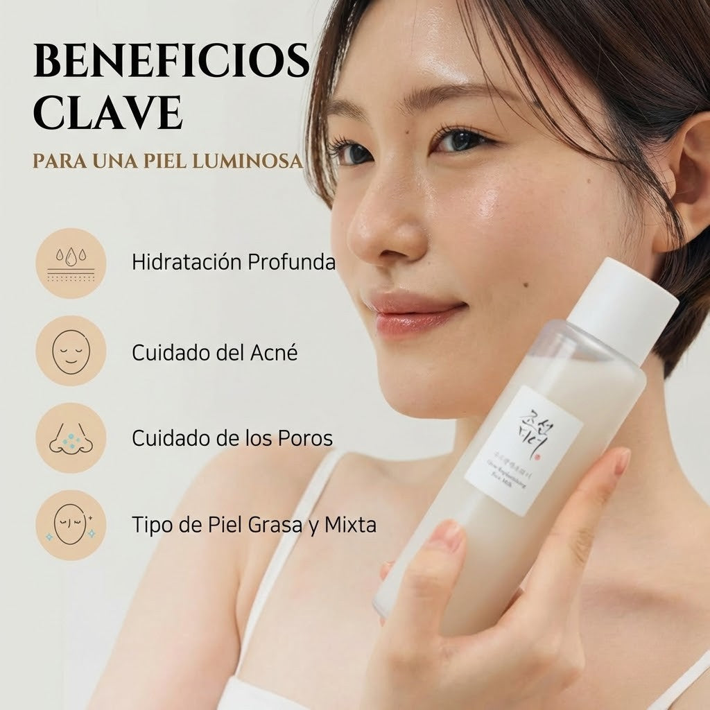 Inspirado en el uso tradicional del agua de arroz durante la era Joseon, este tónico combina extracto de arroz rico en nutrientes con un complejo de control de sebo. Al agitar el envase, ambas capas se mezclan para ofrecer hidratación y balance en un solo paso.