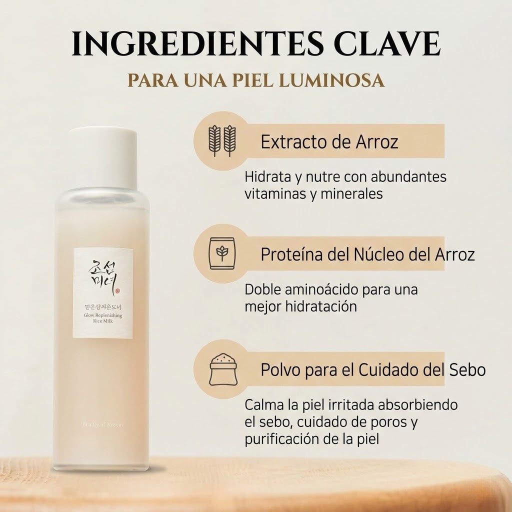 - Extracto de arroz: hidrata, suaviza y aporta luminosidad